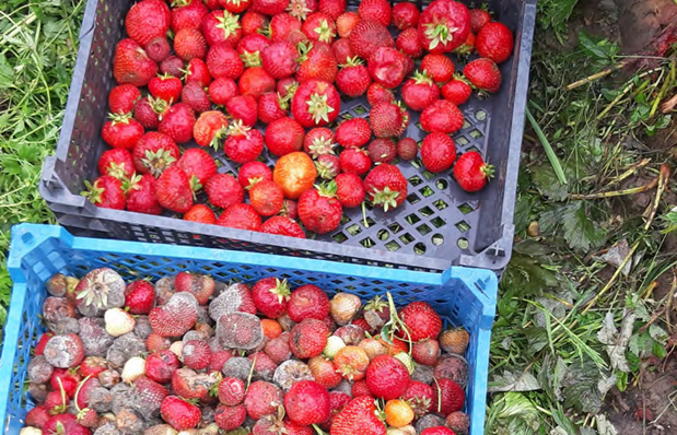 Ogu ienākšanās laikā stādījumi jāaizsargā no putniem, kas reizēm var radīt diezgan lielus ražas zudumus, it īpaši, ja sabojā pirmās, lielākās ogas. Jau ziedēšanas laikā jāpavēro, vai ziedos nedarbojas tripši, kas ar neapbruņotu aci ir diezgan grūti saskatāmi, jo ļoti sīki. Ražas laikā tie var būtiski sabojāt ogu kvalitāti, jo īpaši vēlīnajām šķirnēm. Cīņā ar tiem var izmantot reģistrētos insekticīdus: Benevia 100 OD vai arī bioloģiskajiem audzētājiem atļautos Naturalis un Tracer. Ražas laikā, lai neveicinātu puvju izplatību, vācot ogas, atsevišķi jāsavāc un jāizvāc prom no lauka visas iebojātās ogas.