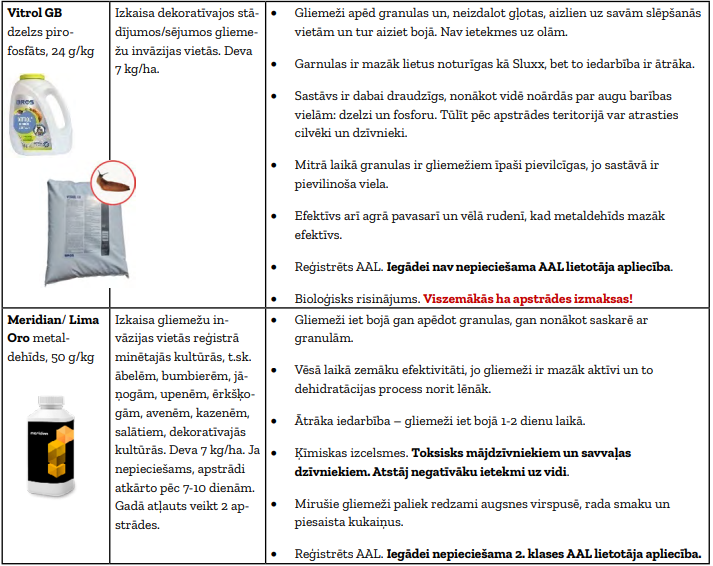 Visus ieteiktos risinājumus ieteicams lietot, kad gliemeži ir aktīvi - pēc lietus, rīta stundās.